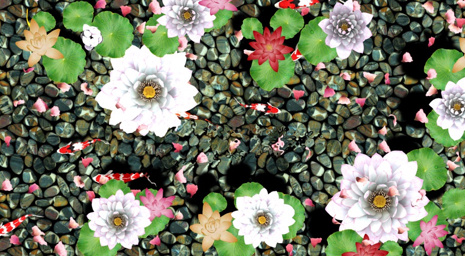 游客走过的路上会出现水波纹,可外部替换背景音乐。