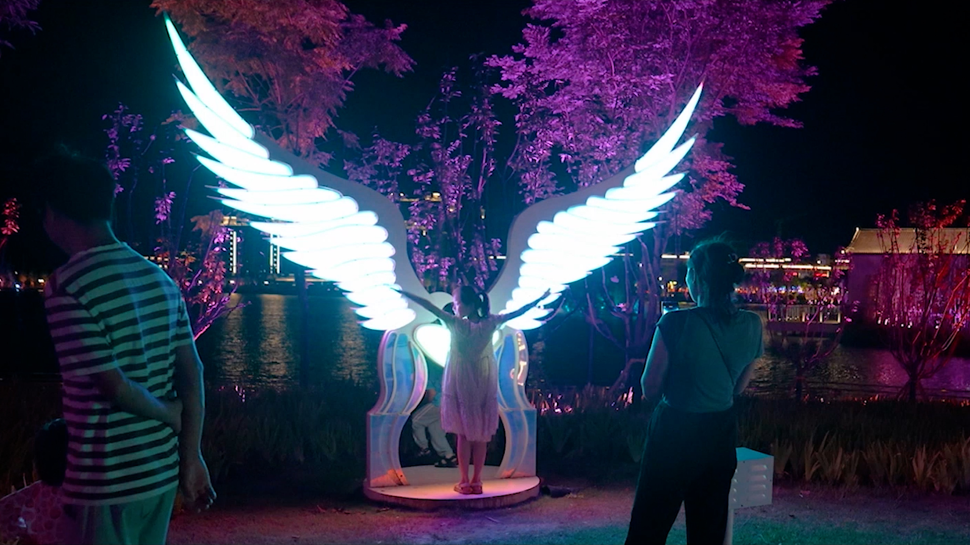 后河·梦回庐陵景区以“梦回庐陵”为主题,以桥为引,以船为媒,造梦大师则根据「梦回庐陵」景区的夜游主题,为其量身定制研发了一系列互动装置。