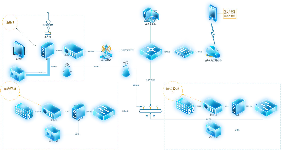 跨系统协同表演、舞台、浮台等表演点音频系统、灯光系统可接入游船巡游系统